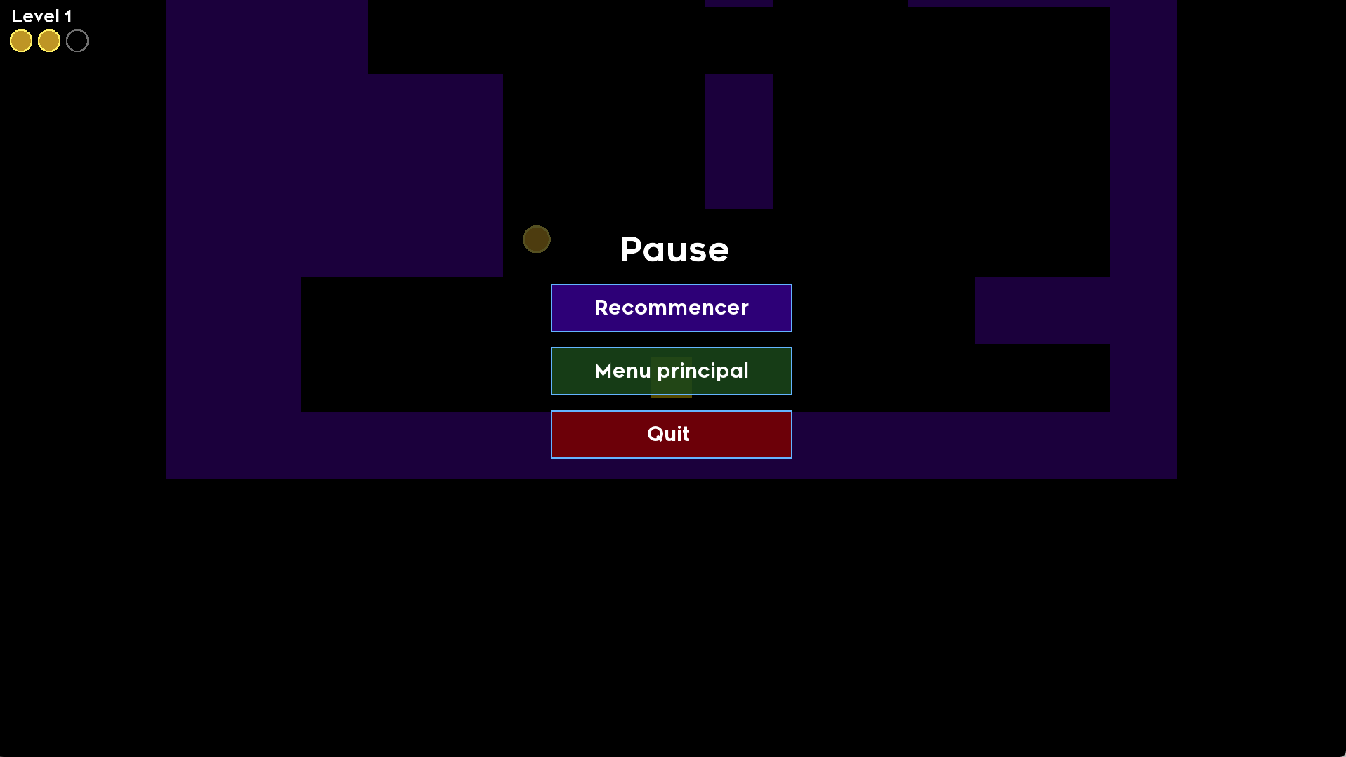 - Menu pause : restart, retour au menu, quitter (echap)
